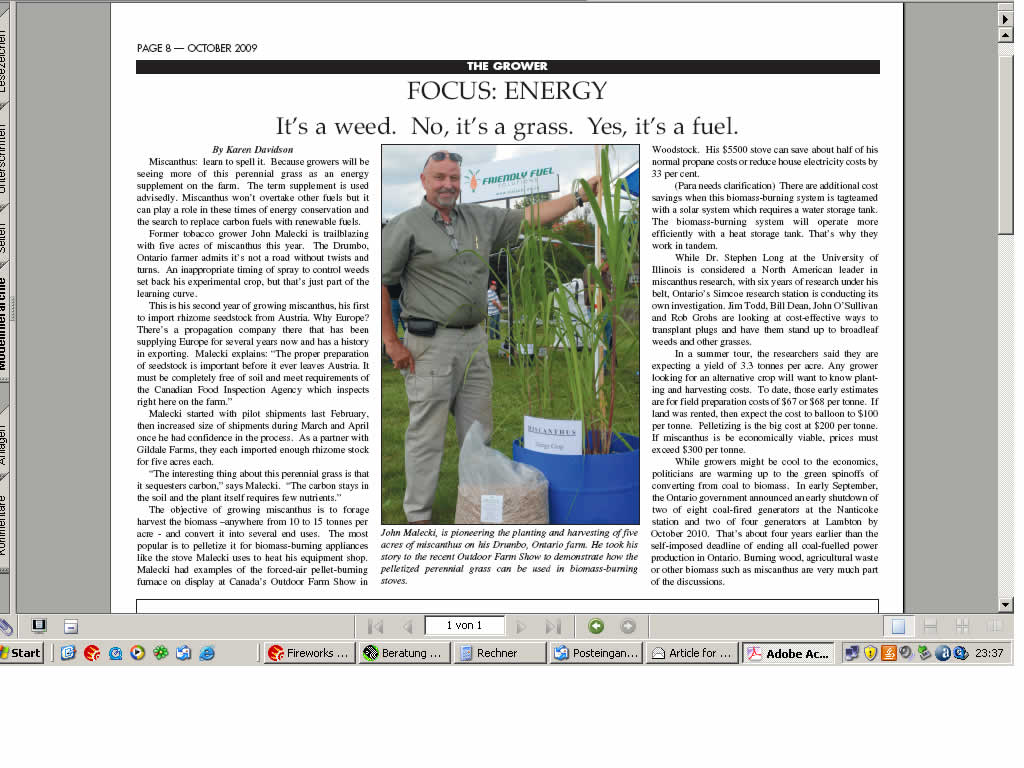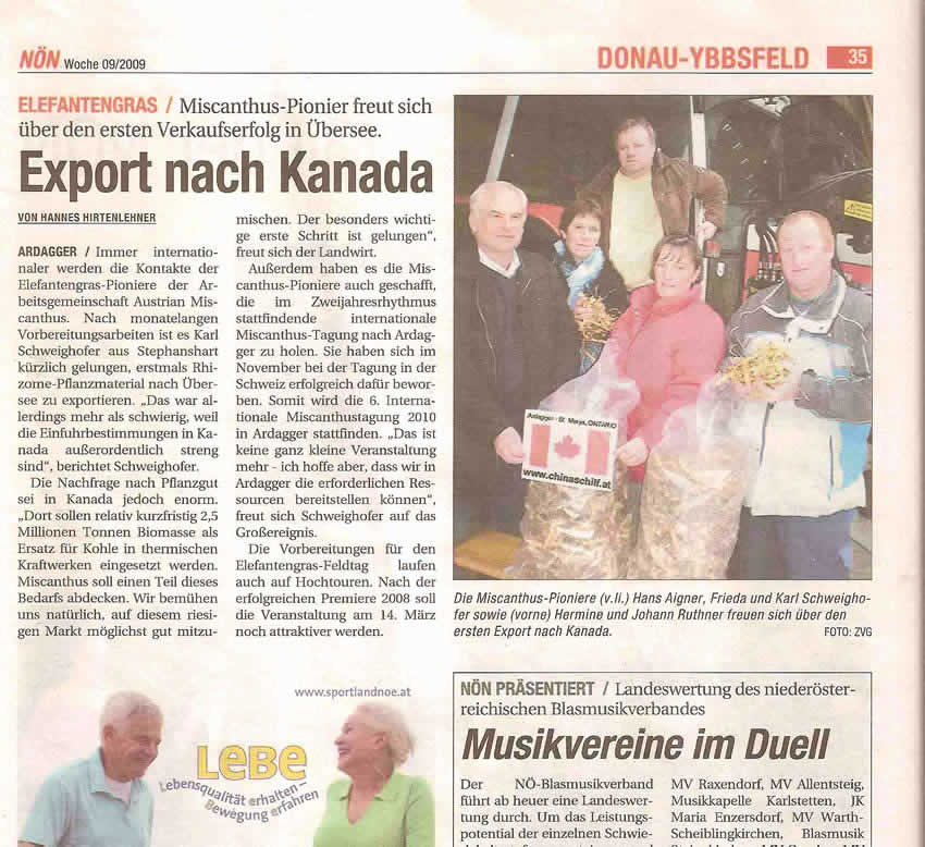 Verwertung von Miscanthus. In der Folge wurde die Lieferung
